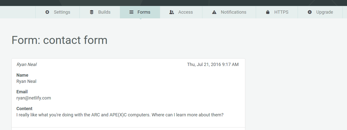 Did you know that Netlify can handle form submissions for you without requiring complicated backends? Every site in a paid or Open Source plan can take advantage of this feature!