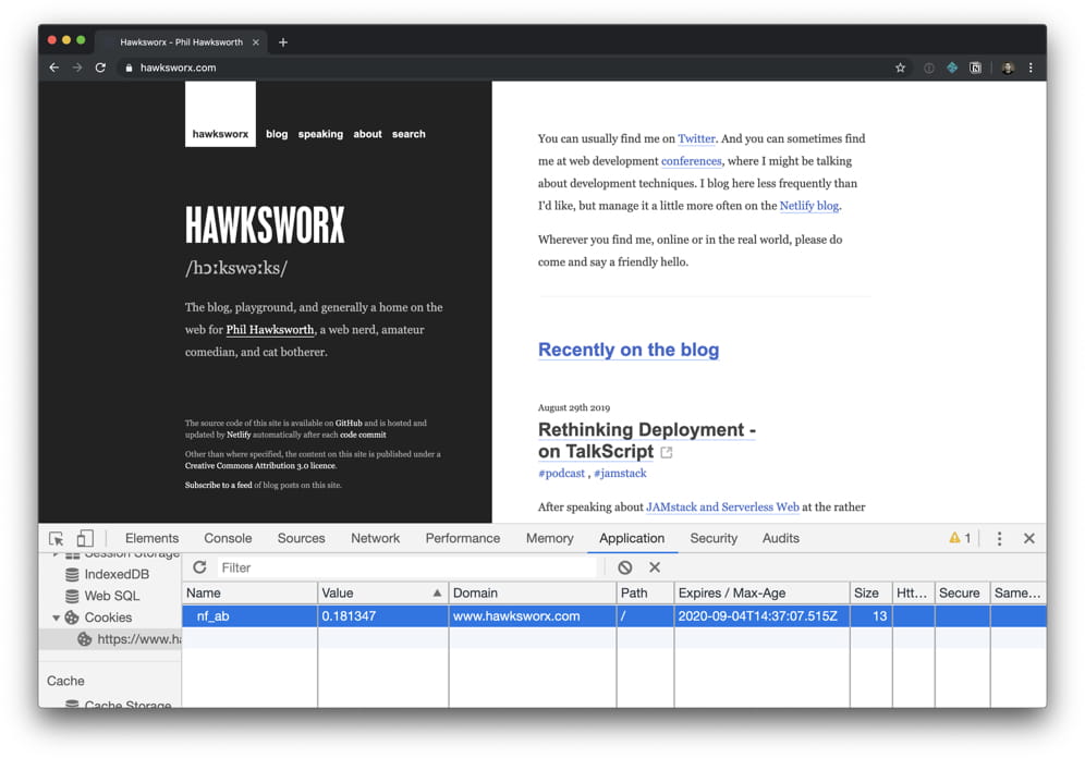 Here’s the cookie added by the Netlify CDN when I visit my own site: