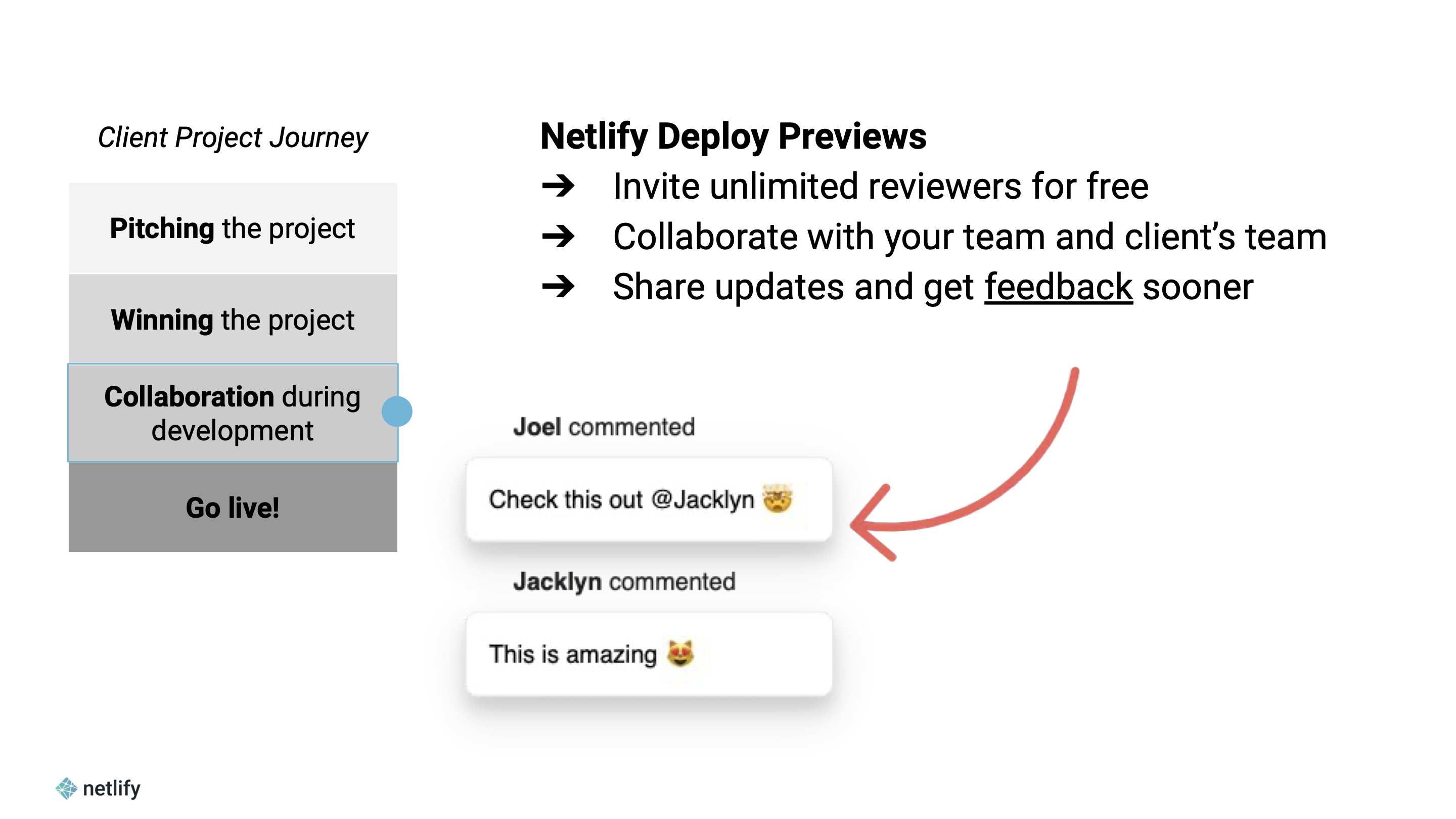 Lastly, dedicated client accounts better enable the Netlify team to support the client in a more personal and professional way.