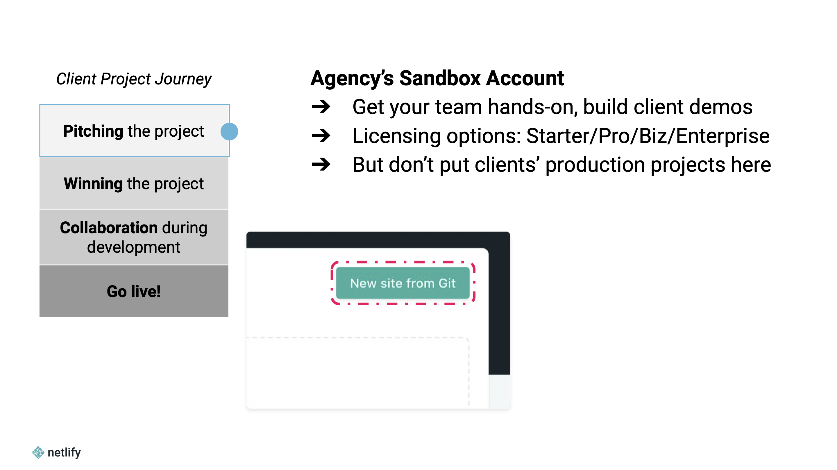 After working together with so many world-class agencies, we’ve learned a few things about how our agency partners should best manage clients’ projects on Netlify.