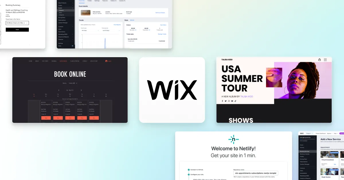 In addition to Bookings, Wix also provides Netlify templates for Events, e-commerce and CMS.