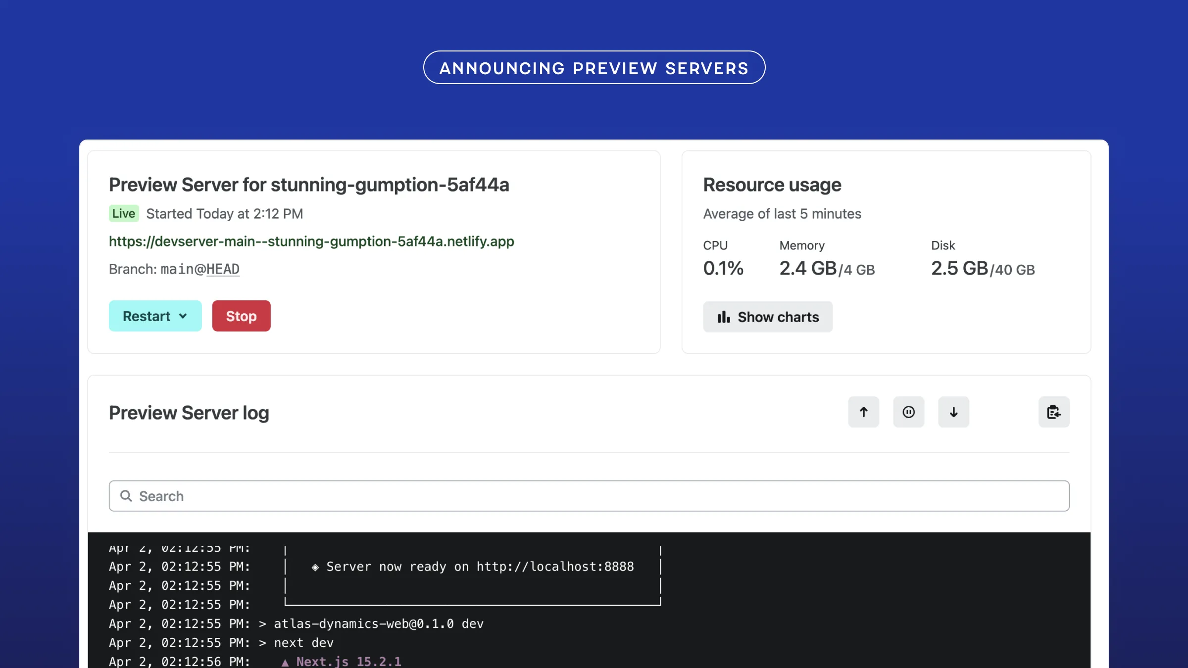 News & Announcements April 3, 2025 Announcing Netlify Preview Servers: real-time previews without rebuilds Gehrig Kunz